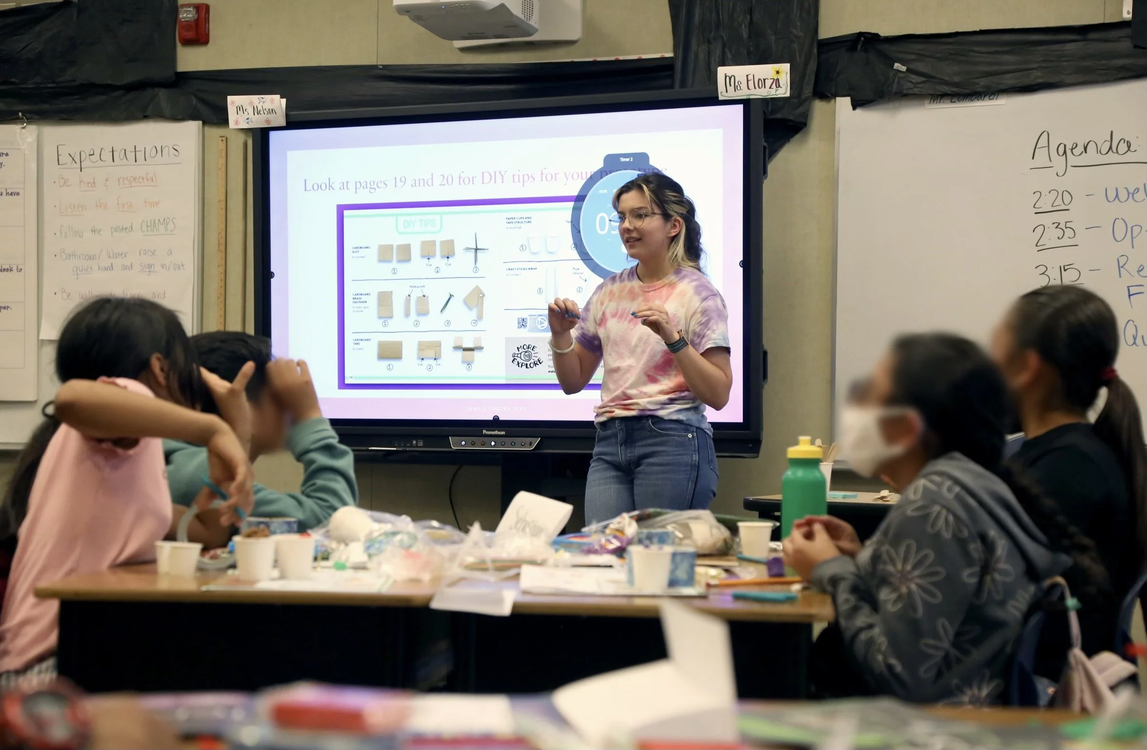 For the second year in a row, I co-taught a summer school class. Our curriculum was STEAM (Science, Technology, Engineering, Art, and Mathematics) centered. My co-teacher and I taught lessons centered around creativity in an engaging hands on way. Our class of about 15 second grade students got to build science experiments, learn about renowned artists, and most importantly, have fun. This photo was taken in 2022 by my co-teacher while I was giving direct instructions to our class.